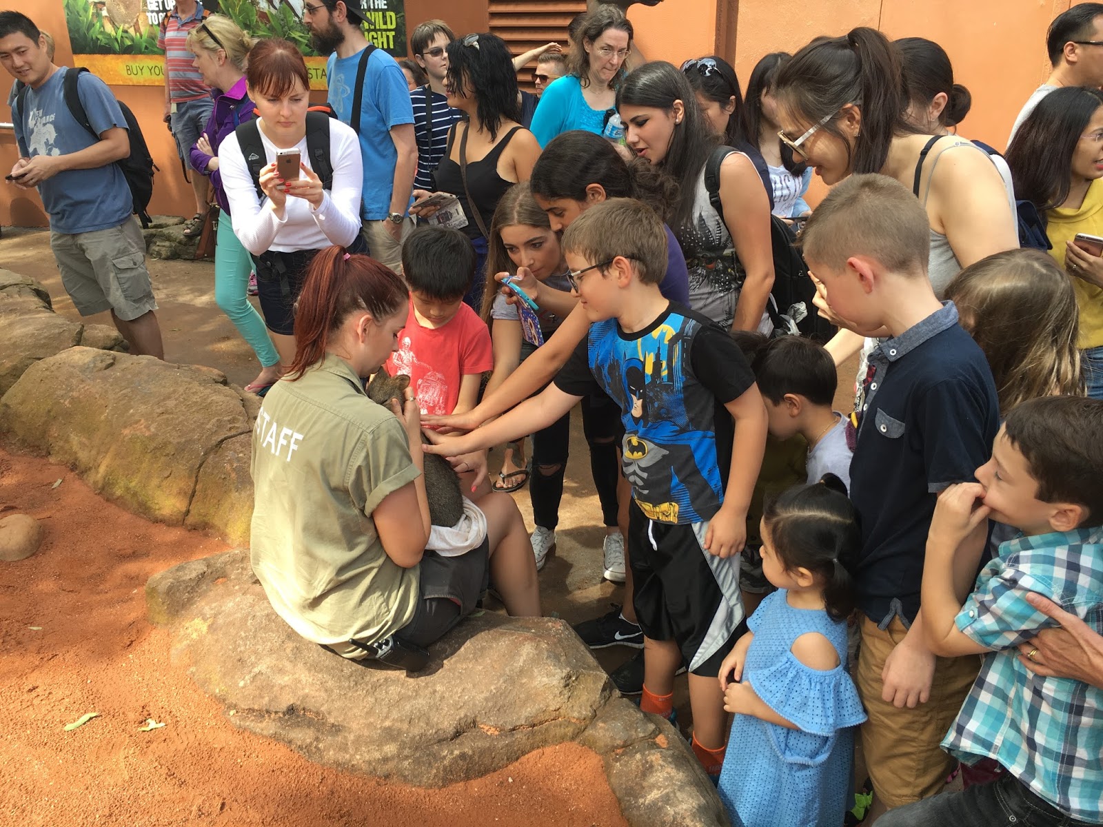 This little zoo is fun because at certain times during the day they bring out animals for us to touch. The boys really get excited. Sometimes we have the place to ourselves, but not today... It was a bit crowded, but the boys were good to squeeze themselves through the crowds.